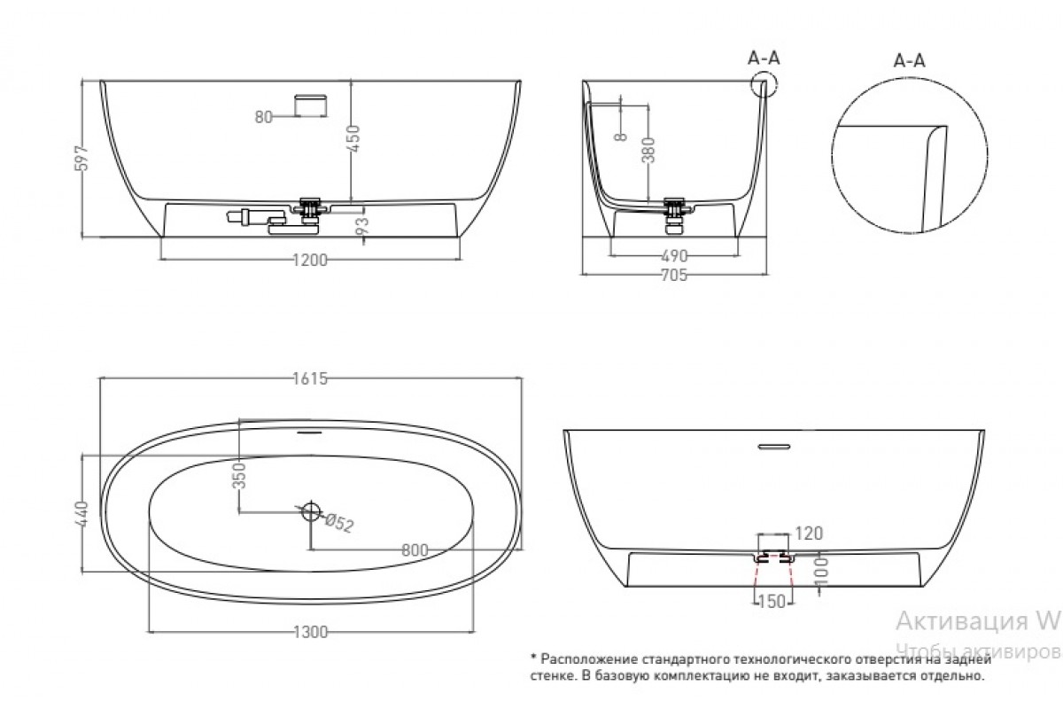 Ванна из искусственного камня Salini Alda S-Sense 160х70 глянцевый, покраска по RAL полностью 101914GF