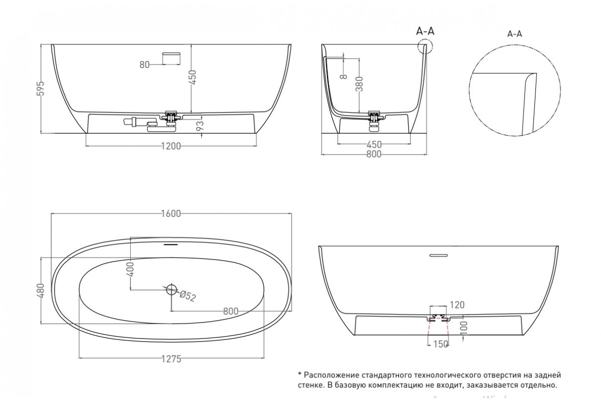 Ванна из искусственного камня Salini Alda S-Sense 160х80 глянцевый, покраска по RAL полностью 101913GF