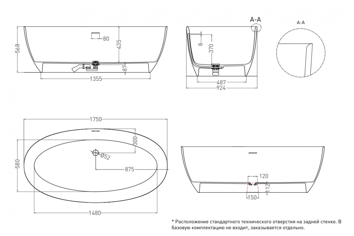 Ванна из искусственного камня Salini Alda S-Stone 178х92 белый матовый 101911SM