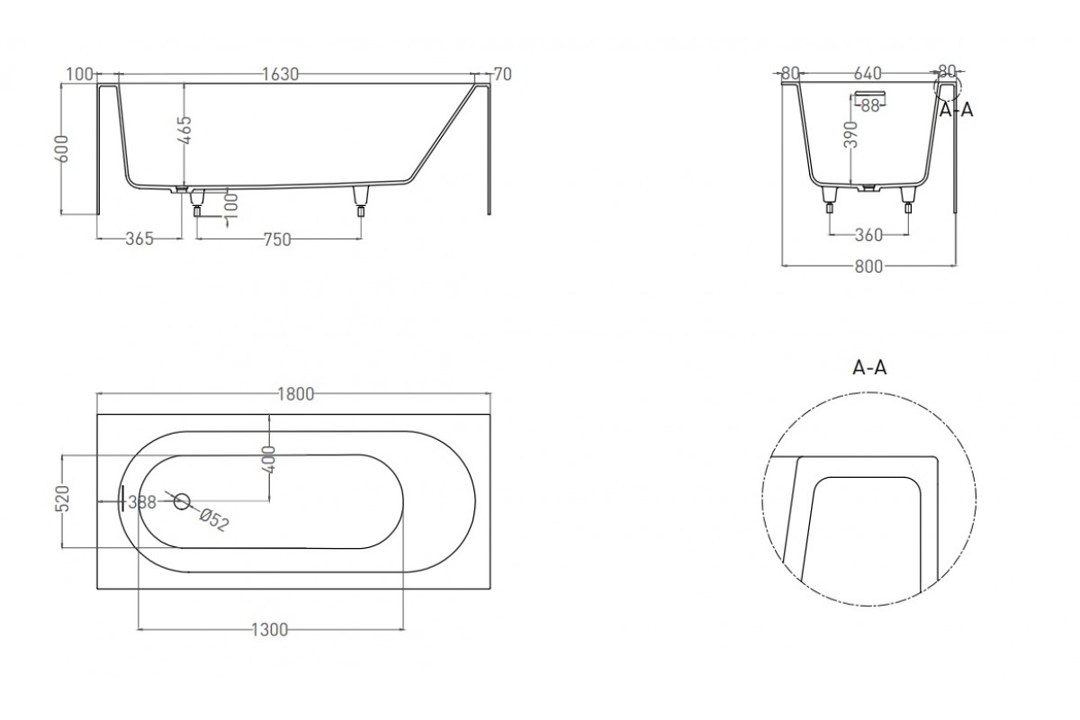 Ванна из искусственного камня Salini Fabia S-Sense 180х80 белый глянцевый 102612G