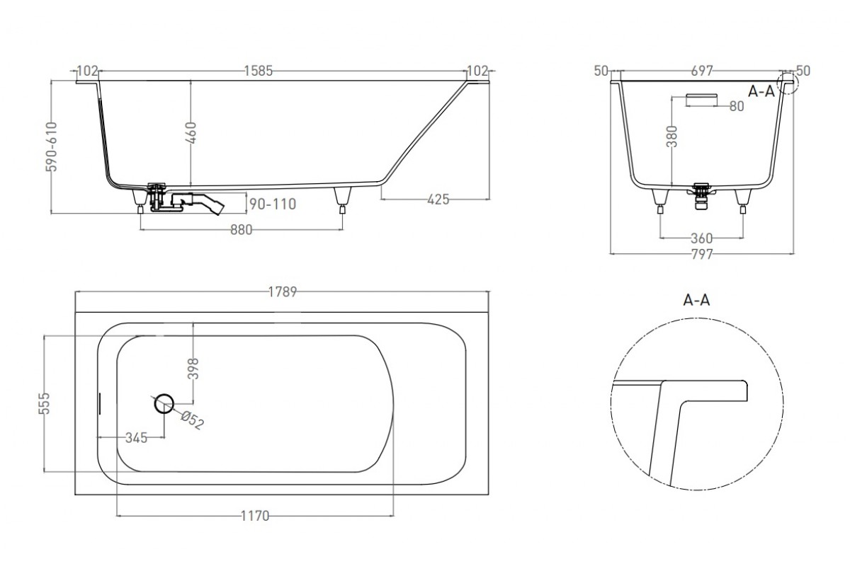 Ванна из искусственного камня Salini Orlanda Kit S-Stone 180х80 матовый, покраска по RAL полностью 102122MF