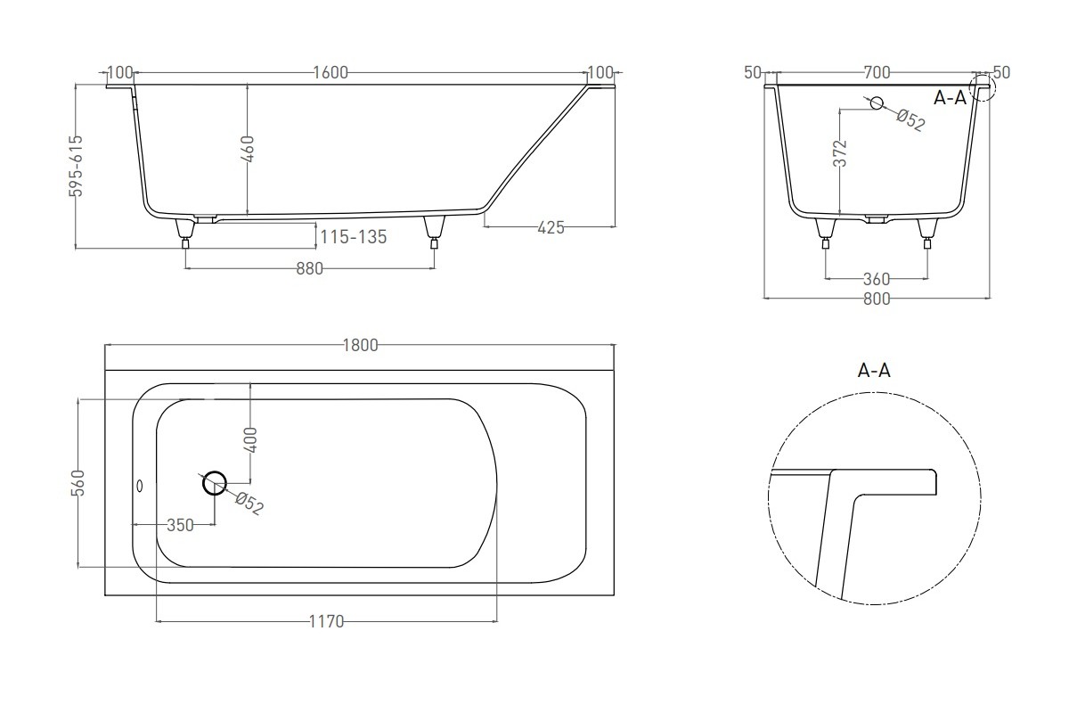 Ванна из искусственного камня Salini Orlanda S-Sense 180х80 белый глянцевый 102012G