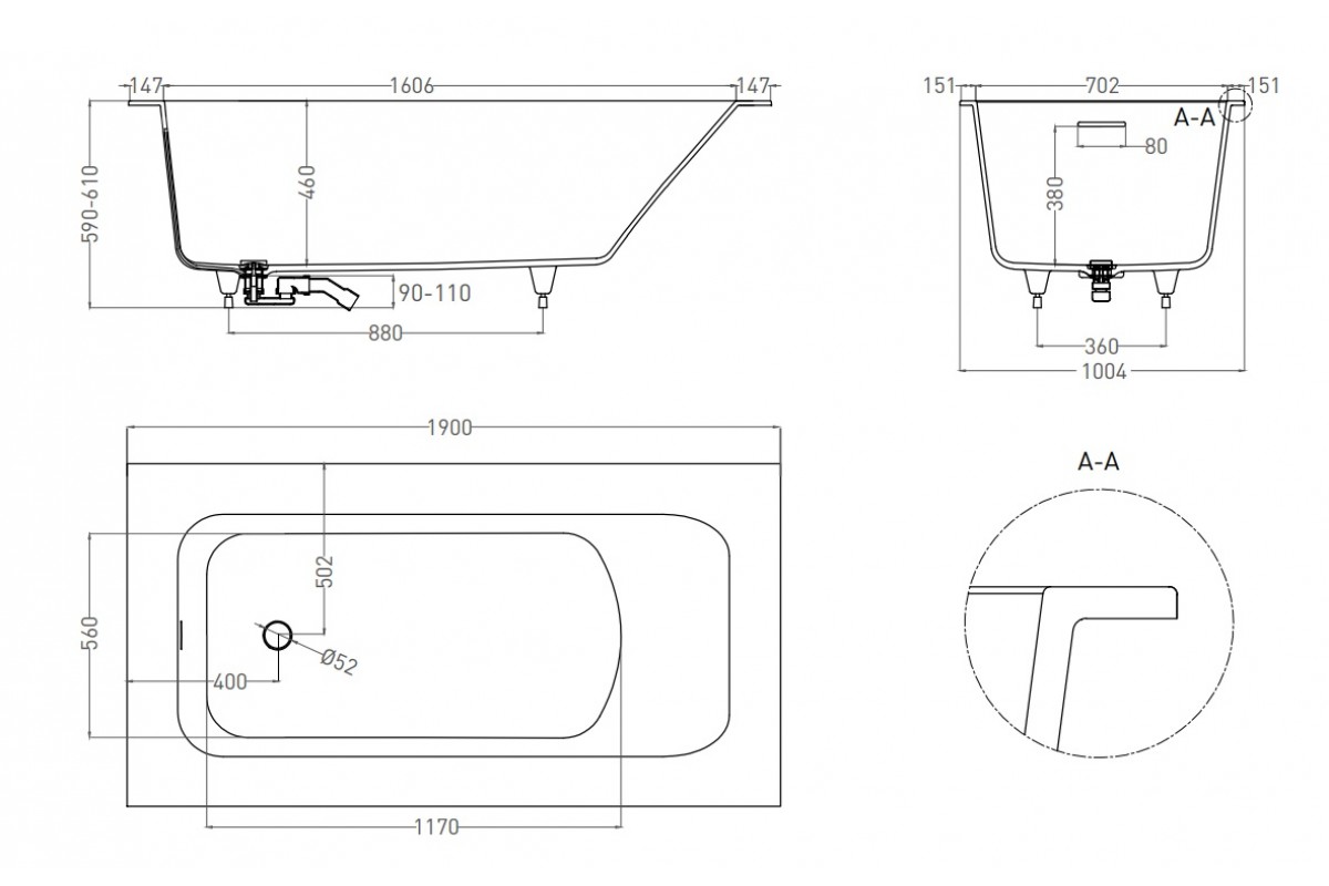 Ванна из искусственного камня Salini Orlanda Plus Kit S-Sense 190х100 белый глянцевый 102114G
