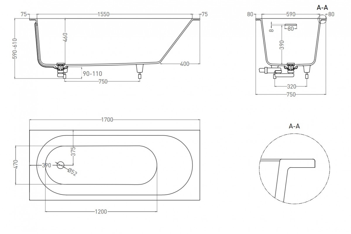Ванна из искусственного камня Salini Ornella Kit S-Sense 170х75 белый глянцевый 102411G