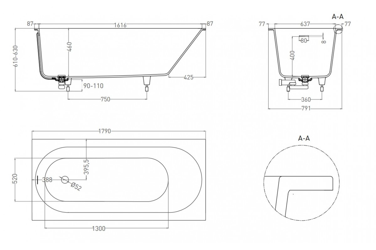 Ванна из искусственного камня Salini Ornella Kit S-Stone 180х80 матовый, покраска по RAL полностью 102422MF