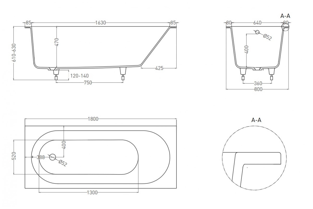 Ванна из искусственного камня Salini Ornella S-Sense 180х80 глянцевый, покраска по RAL полностью 102312GF