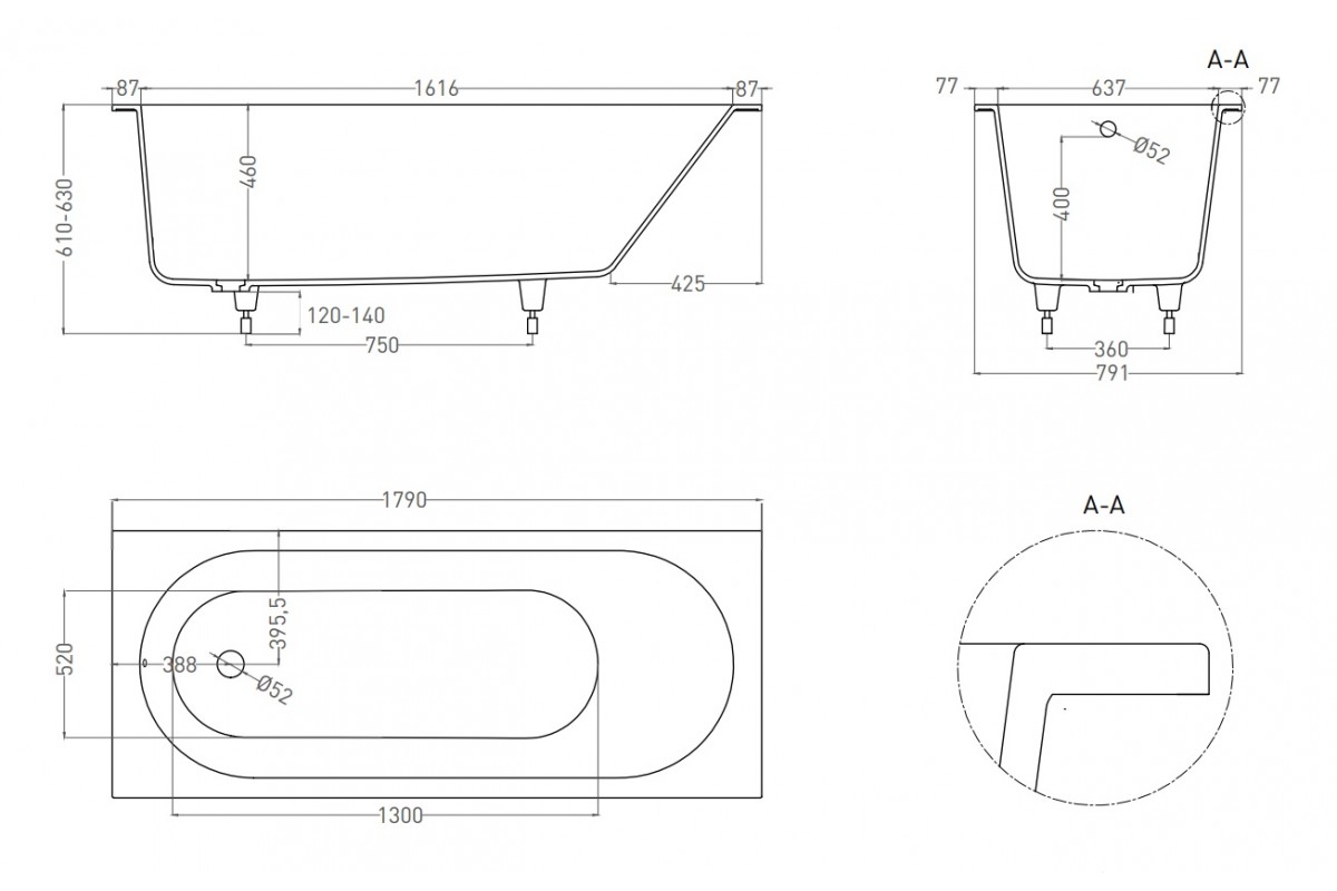 Ванна из искусственного камня Salini Ornella S-Stone 180х80 белый матовый 102322M