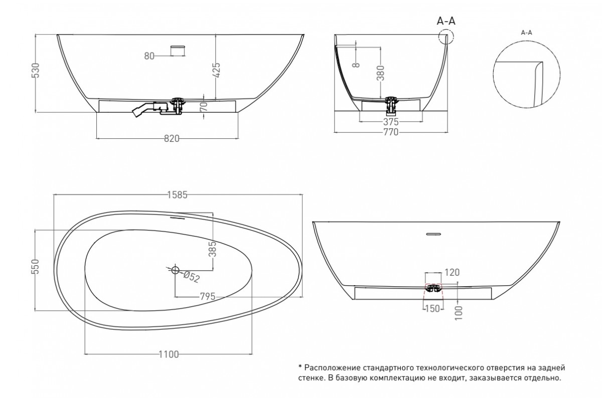 Ванна из искусственного камня Salini Paola In Classic S-Stone 160х77 белый матовый 101611SM