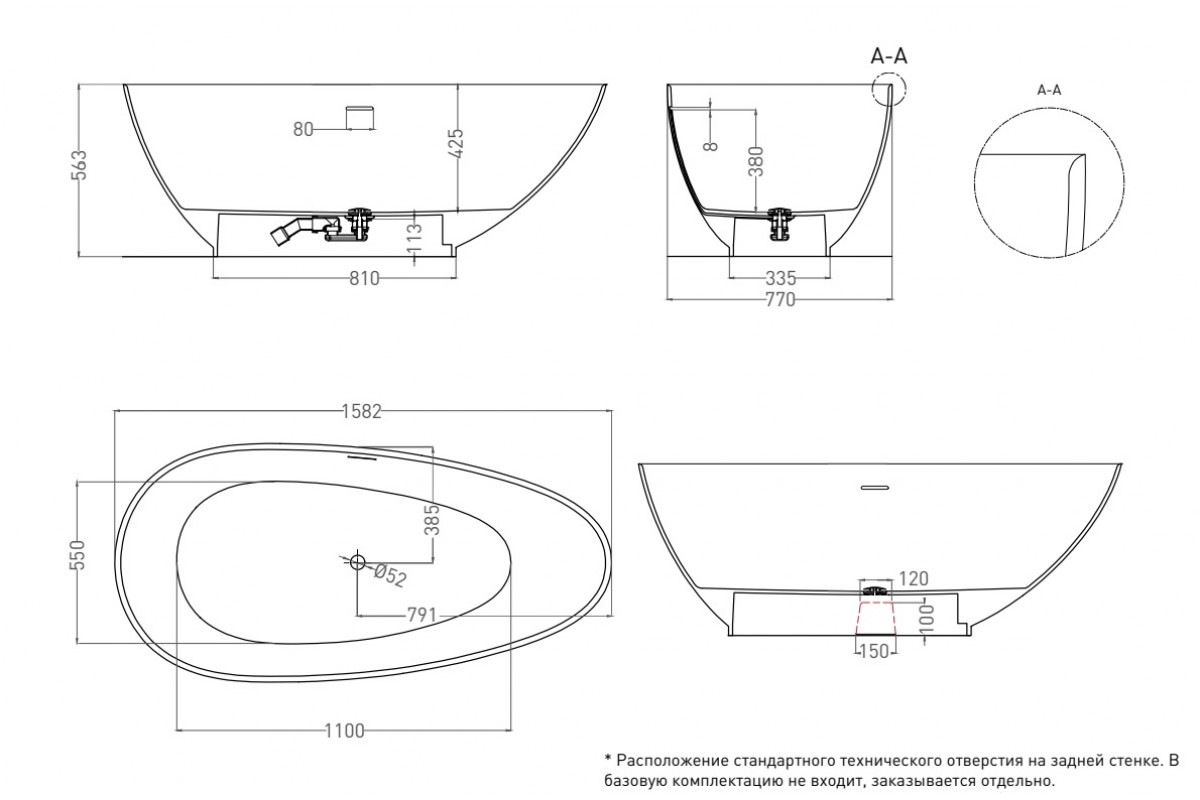 Ванна из искусственного камня Salini Paola Classic S-Stone 160х77 матовый, покраска по RAL полностью 101511SMF