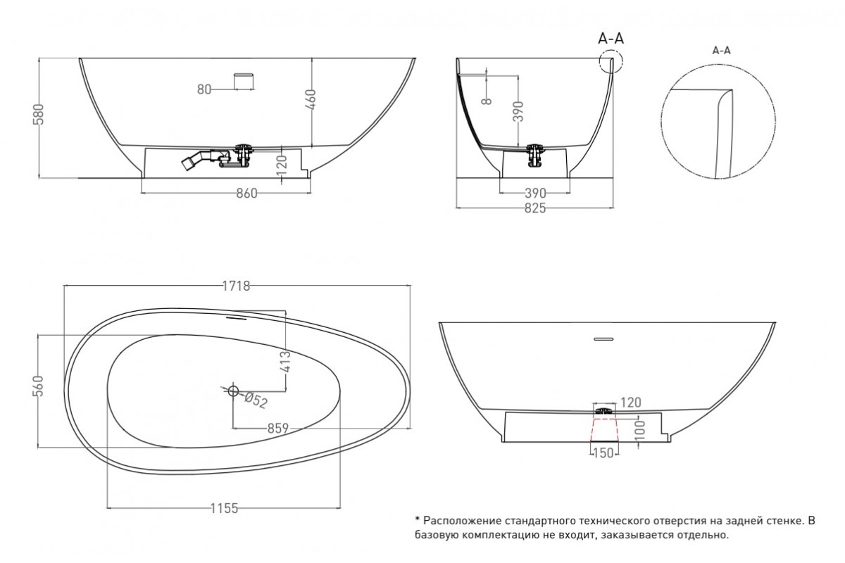 Ванна из искусственного камня Salini Paola Classic S-Stone 172х82 матовый, покраска по RAL полностью 101512SMF