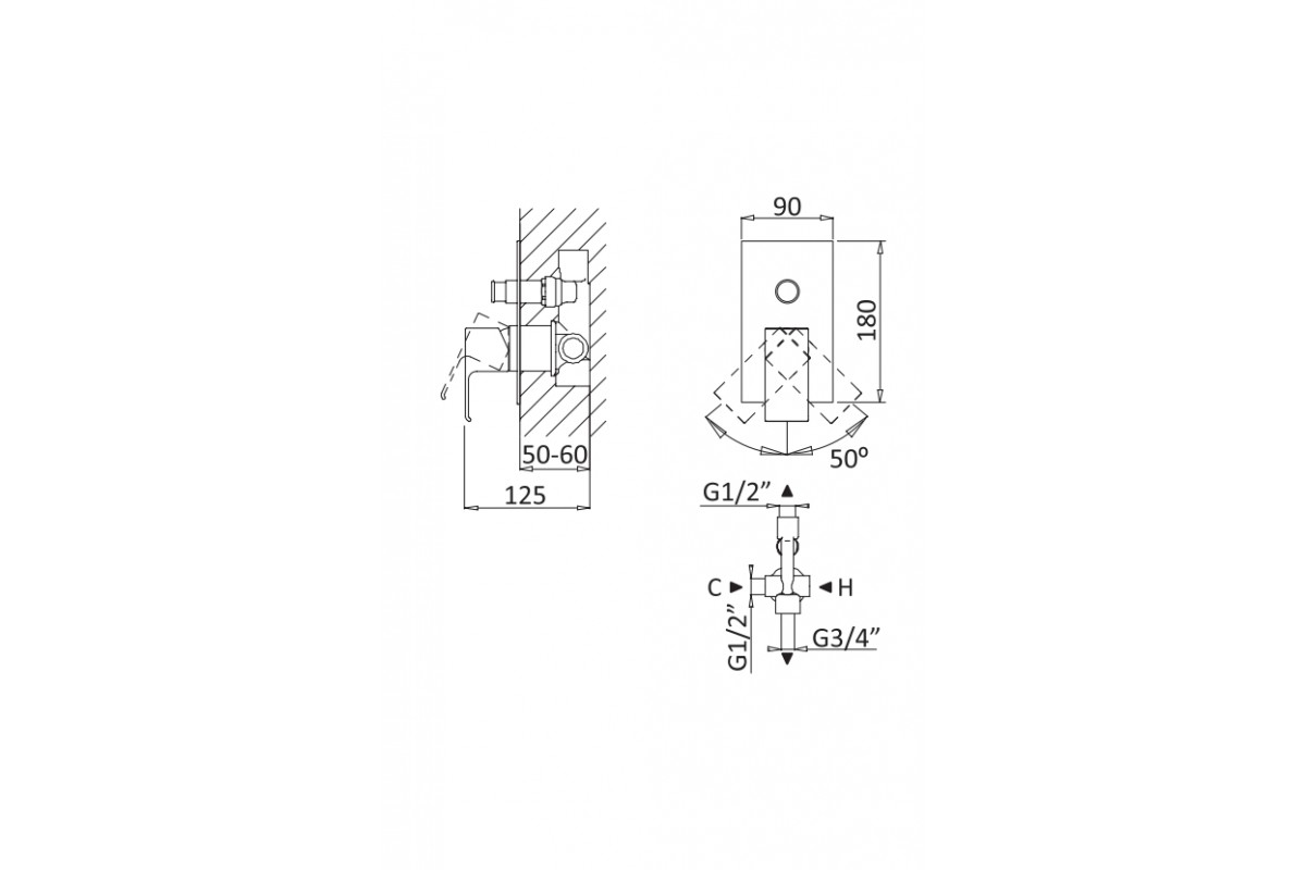 Смеситель Cezares Porta PORTA-VDIM-BIO встраиваемый для душа, белый/матовый