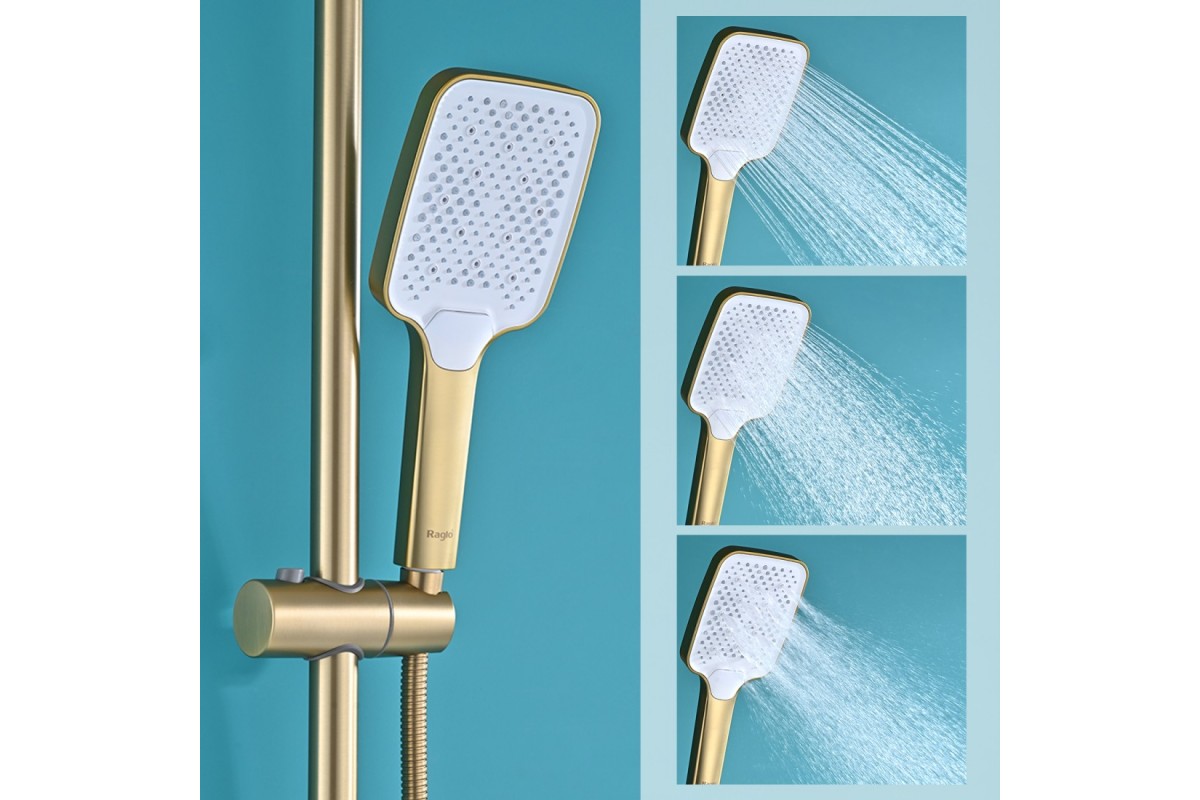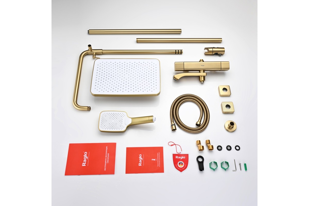 Душевая система Raglo R01.26.03 с термостатом, сатин золотой