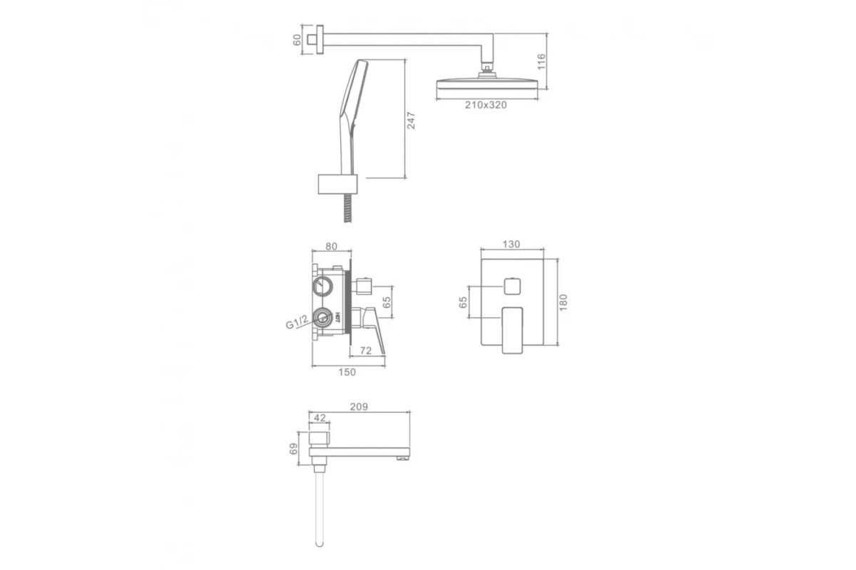 Душевая система Raglo R30.27.06 встраиваемая, черный/матовый