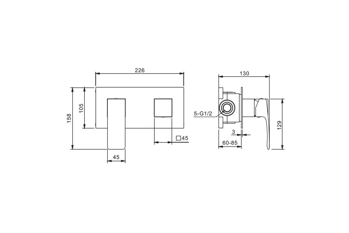 Смеситель Raglo R01.273.03 встраиваемый для ванны и душа, сатин золотой