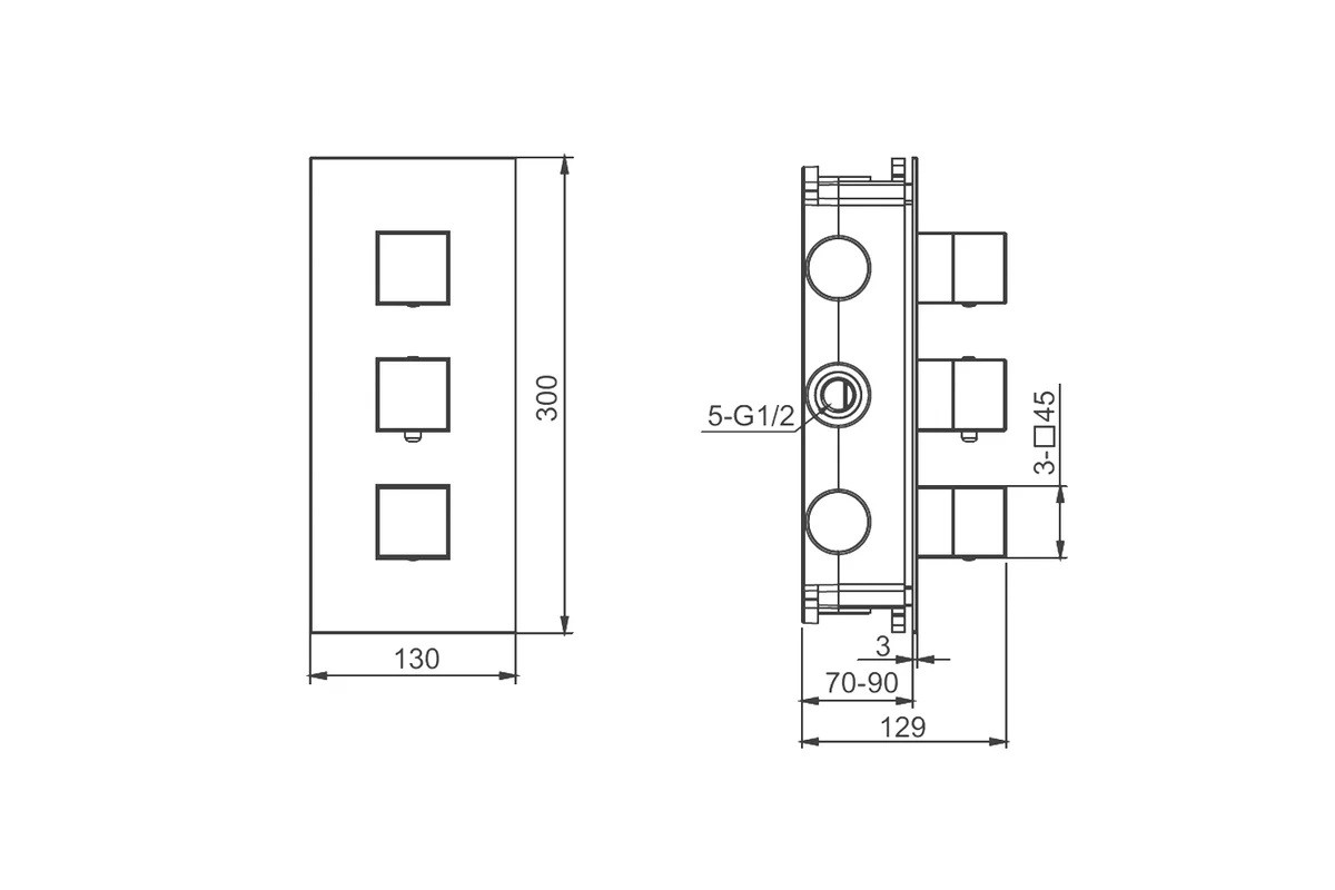 Смеситель Raglo R02.263 встраиваемый для ванны и душа с термостатом, хром