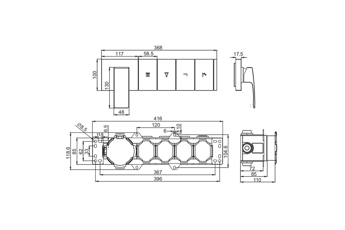 Смеситель Raglo R02.274.09 встраиваемый для ванны и душа, графит