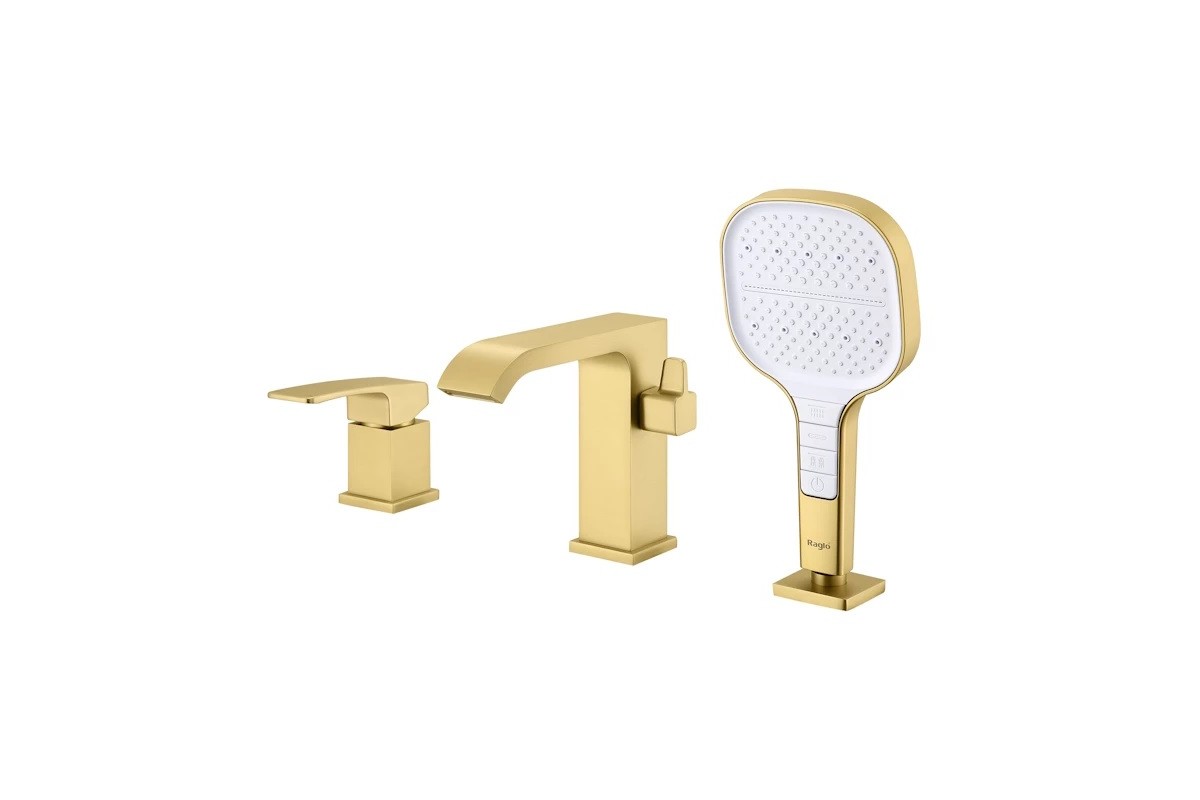 Смеситель Raglo R02.31.03 встраиваемый на борт ванный, сатин золотой