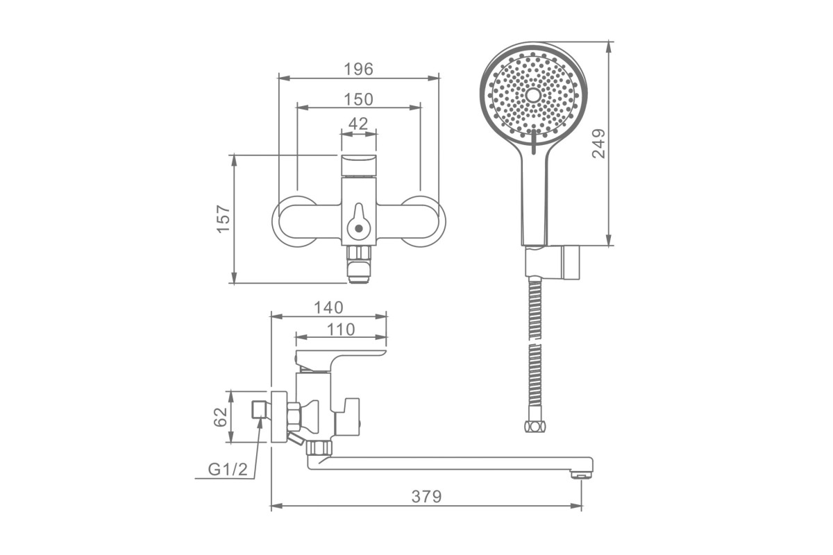 Смеситель Raglo R03.22 для ванны и душа, хром