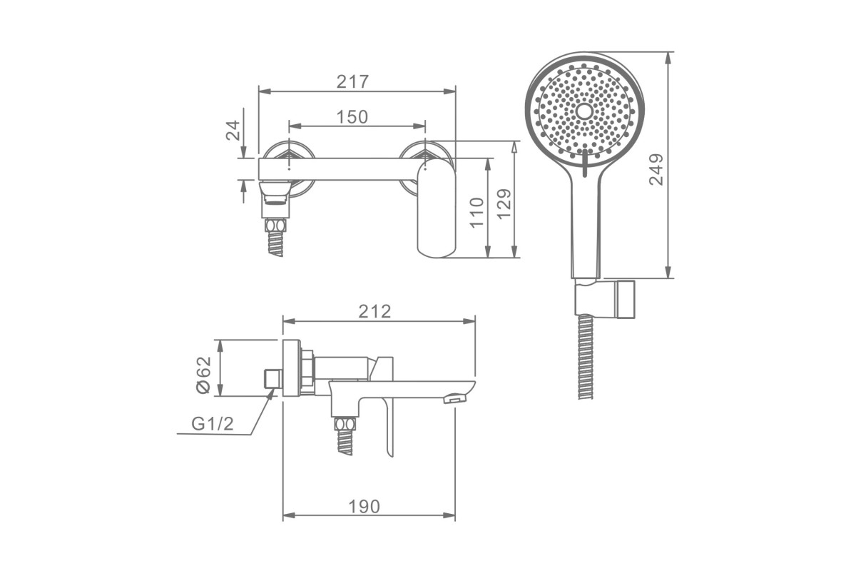 Смеситель Raglo R03.30.09 для ванны и душа, графит