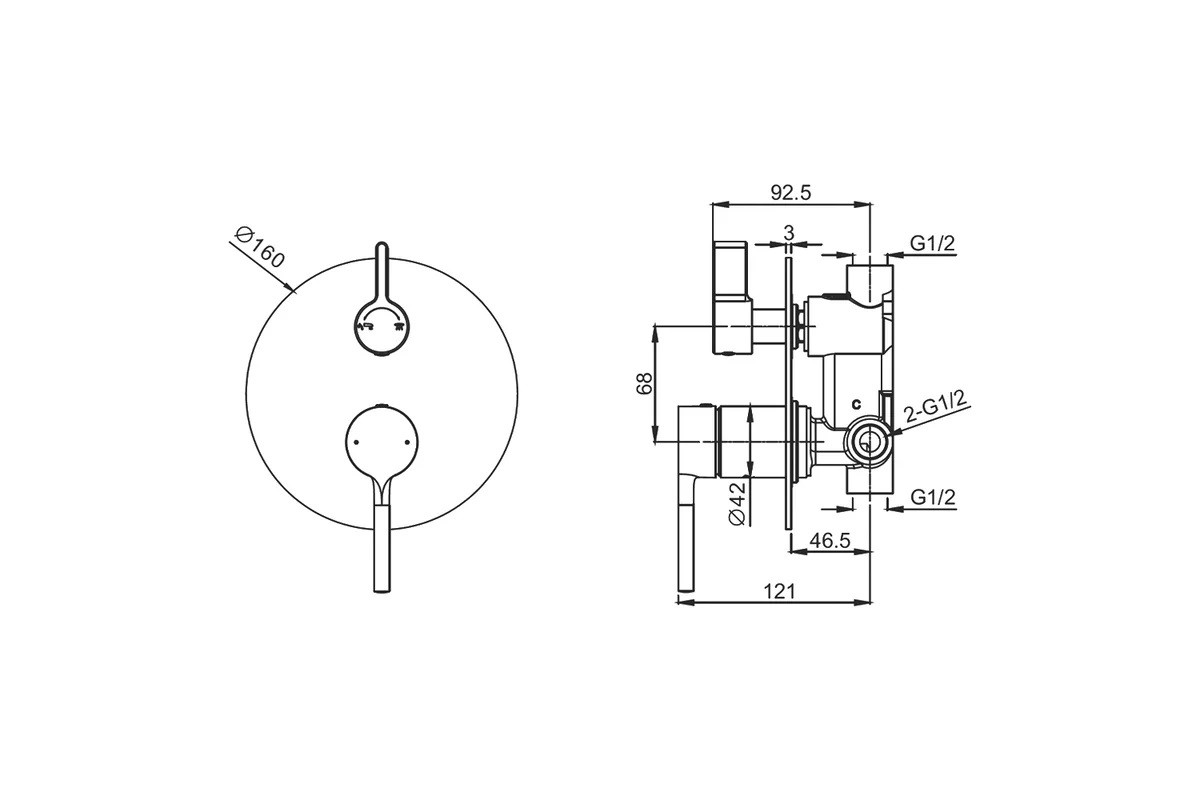 Смеситель Raglo R20.272.03 встраиваемый для ванны и душа, сатин золотой