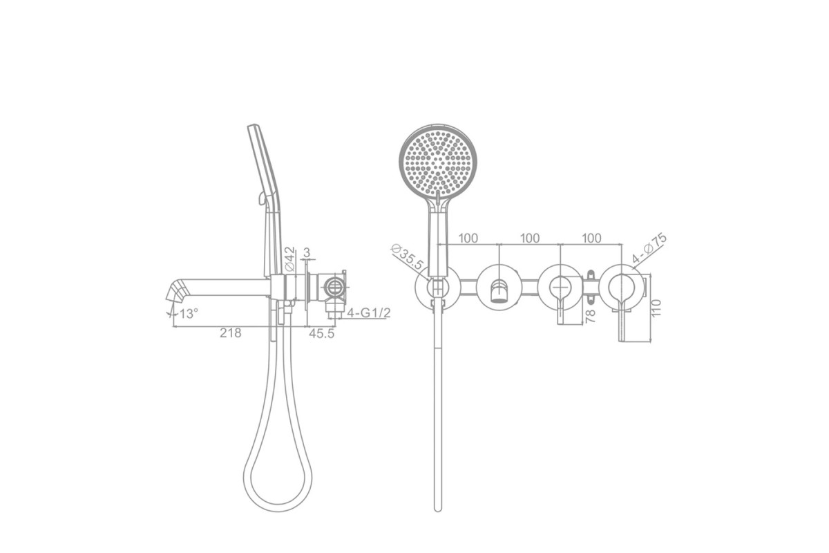 Смеситель Raglo R20.32.03 встраиваемый для ванны и душа, сатин золотой