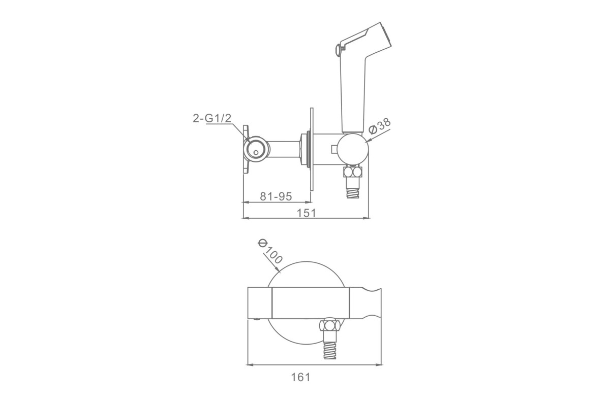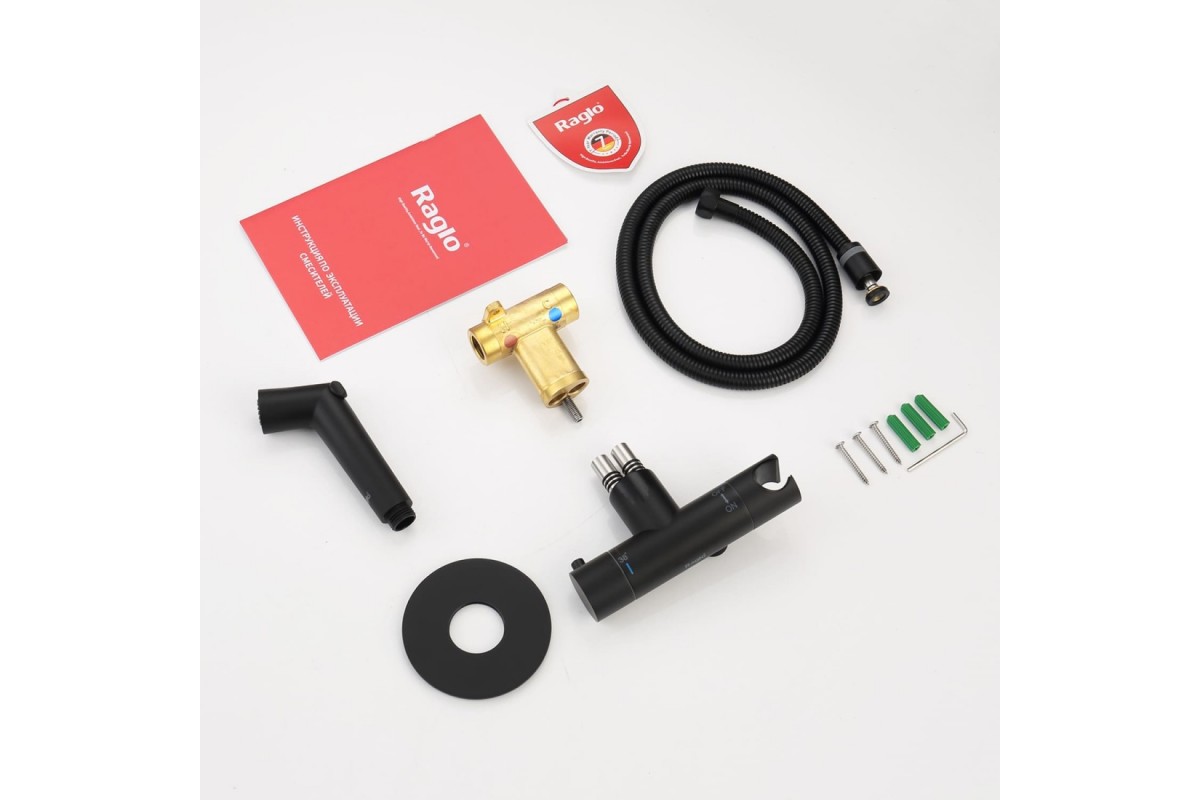 Смеситель Raglo R23.56.06 встраиваемый для гигиенического душа с термостатом, черный/матовый