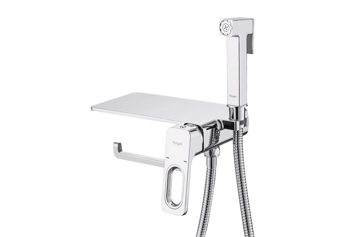 Смеситель Raglo R51.55 встраиваемый для гигиенического душа, с полкой и бумагодержателем, хром