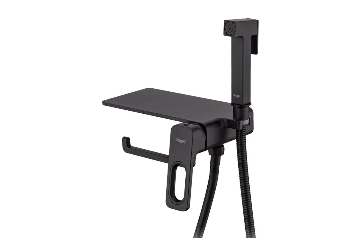 Смеситель Raglo R51.55.06 встраиваемый для гигиенического душа, с полкой и бумагодержателем, черный/матовый