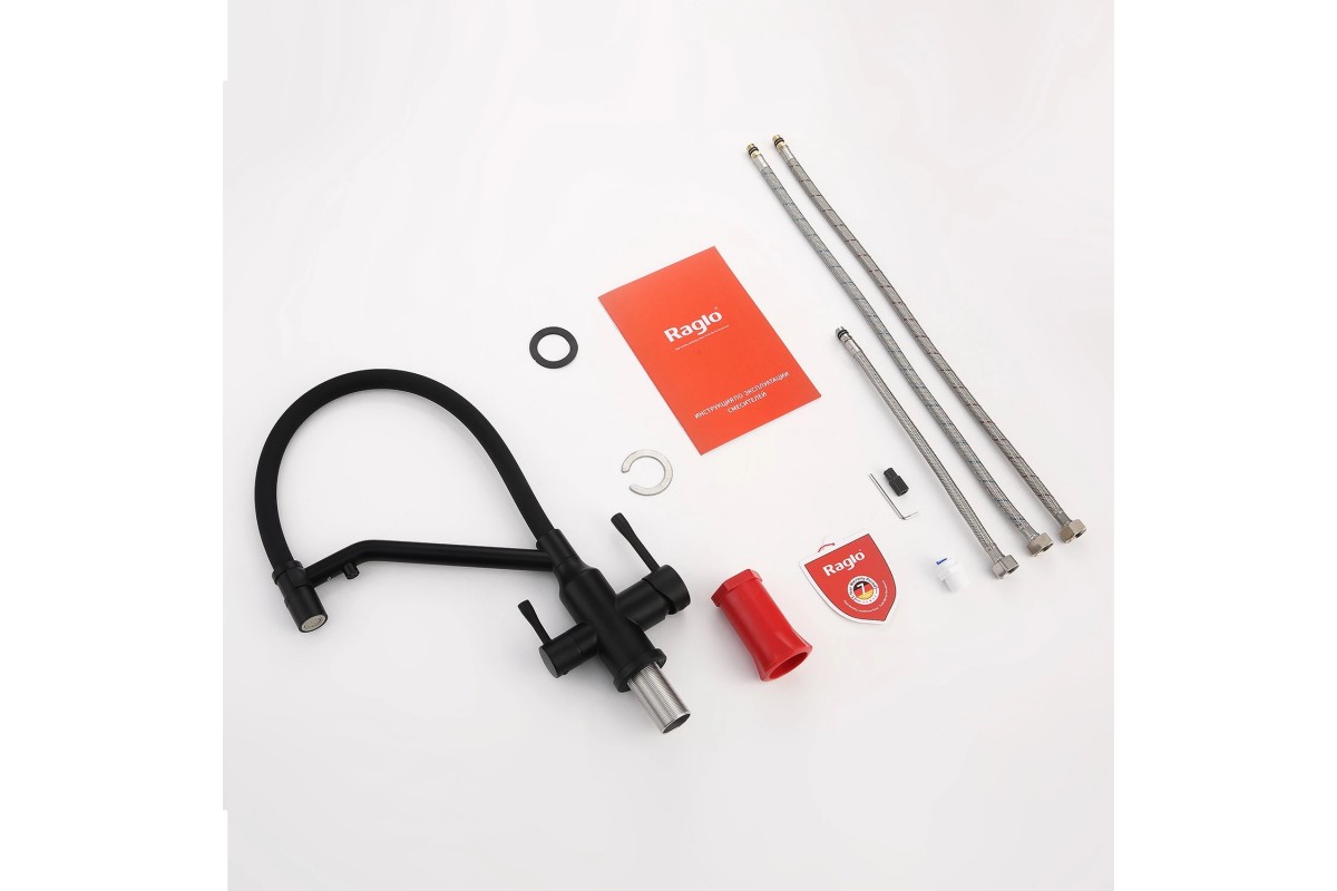 Смеситель Raglo R81.62.06 для кухонной мойки с подключением к фильтру, черный/матовый