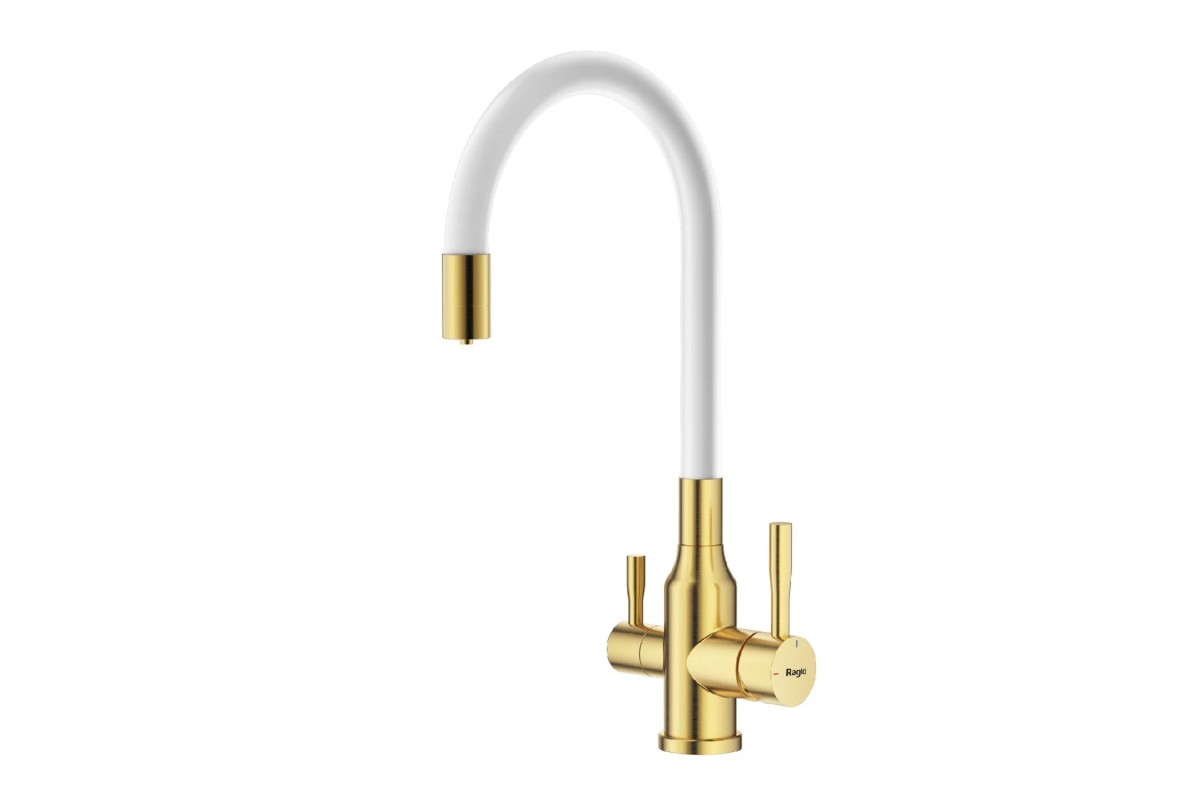 Смеситель Raglo R81.64.03 для кухонной мойки с подключением к фильтру, сатин золотой