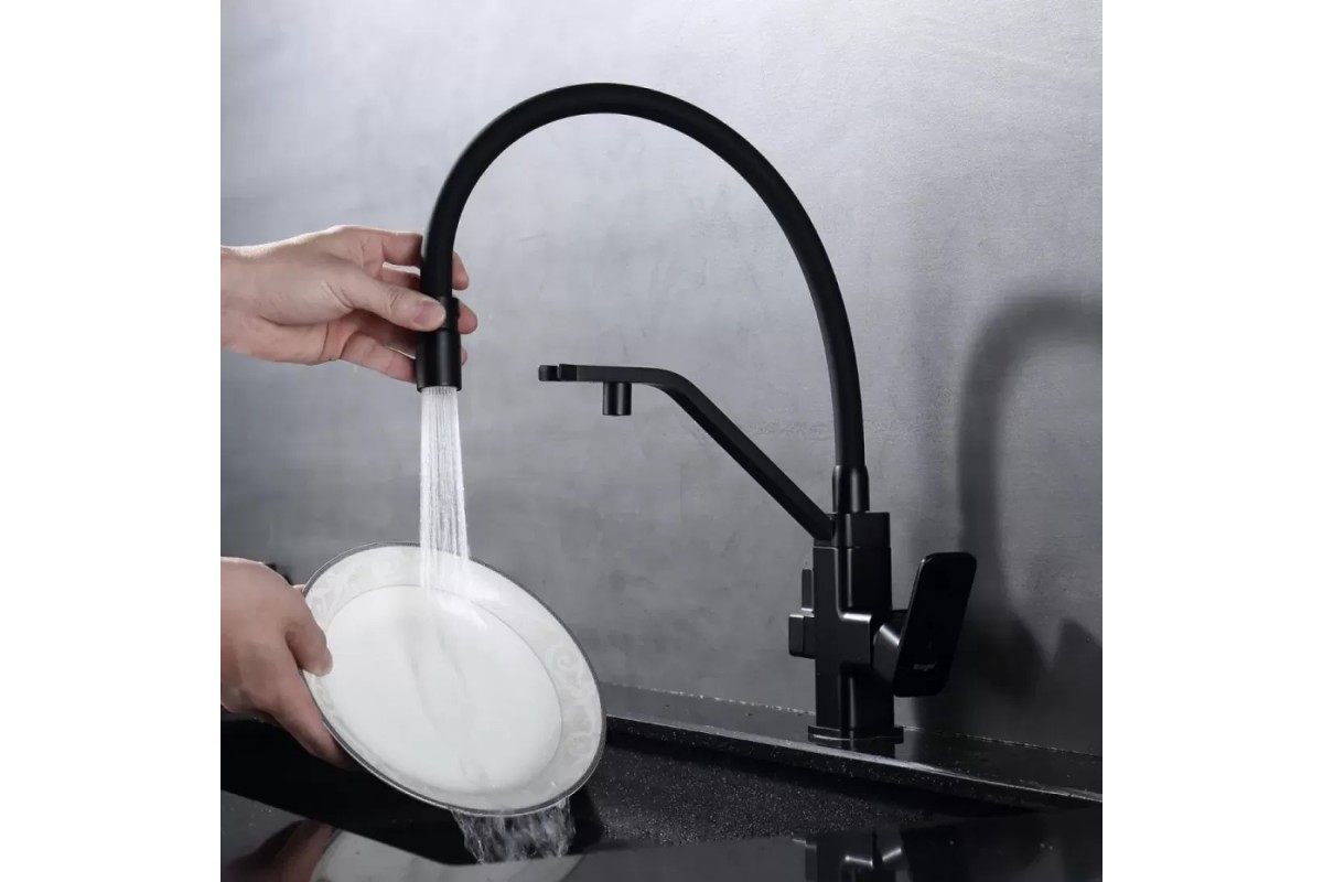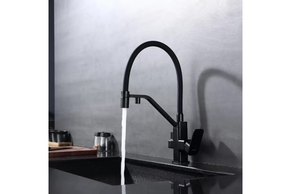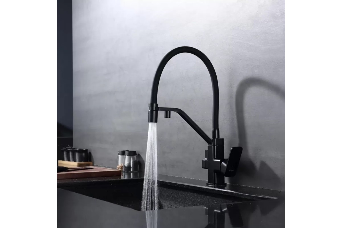 Смеситель Raglo R85.62.06 для кухонной мойки с подключением к фильтру, черный/матовый