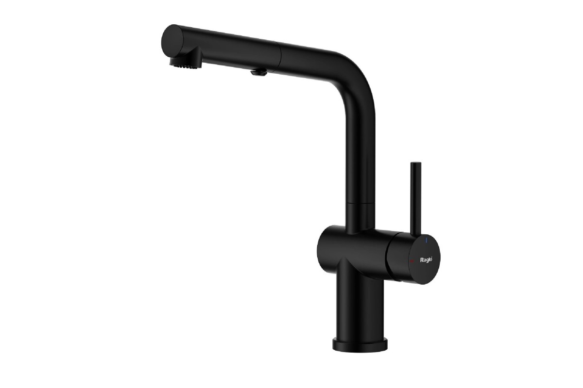 Смеситель Raglo R86.49.06 для кухонной мойки с выдвижным изливом, черный/матовый