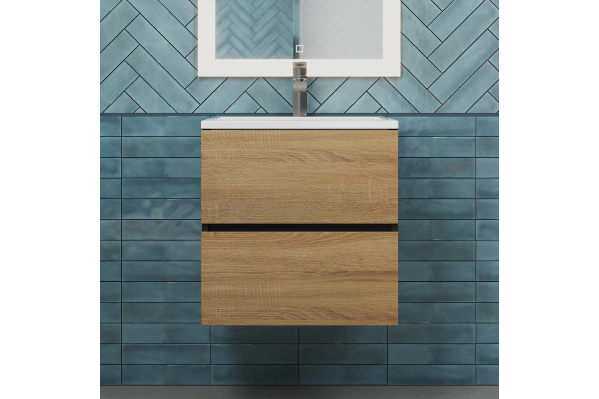 Тумба с раковиной Uperwood Barsa 50 см, подвесная, белая/дуб сонома 29830205646