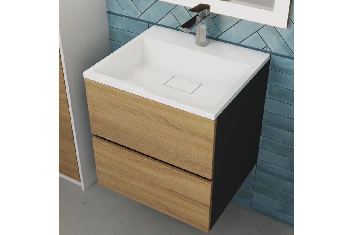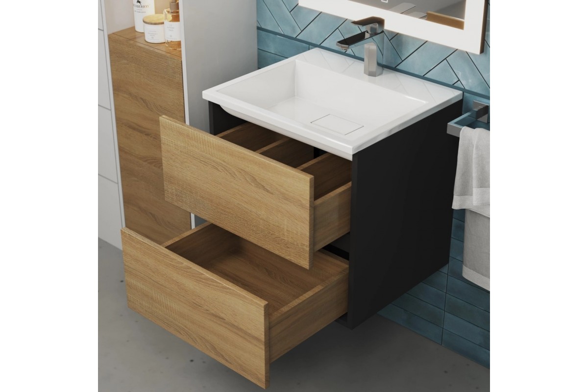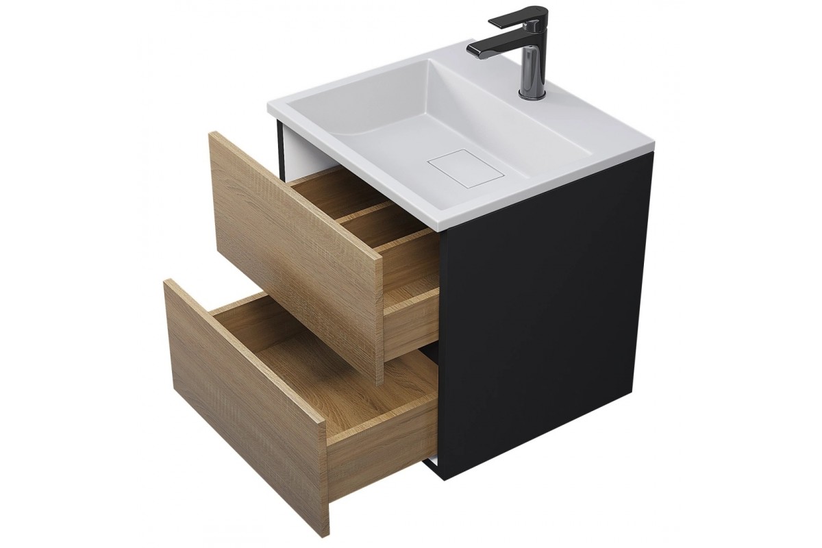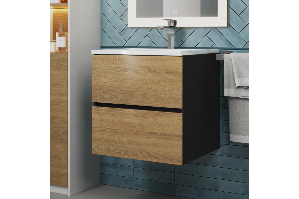 Тумба с раковиной Uperwood Barsa 50 см, подвесная, черная/дуб сонома 29830205647
