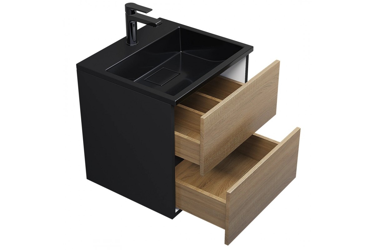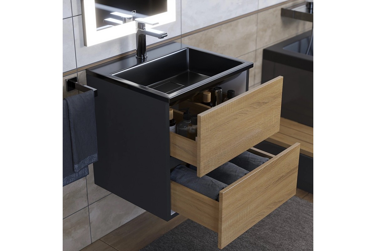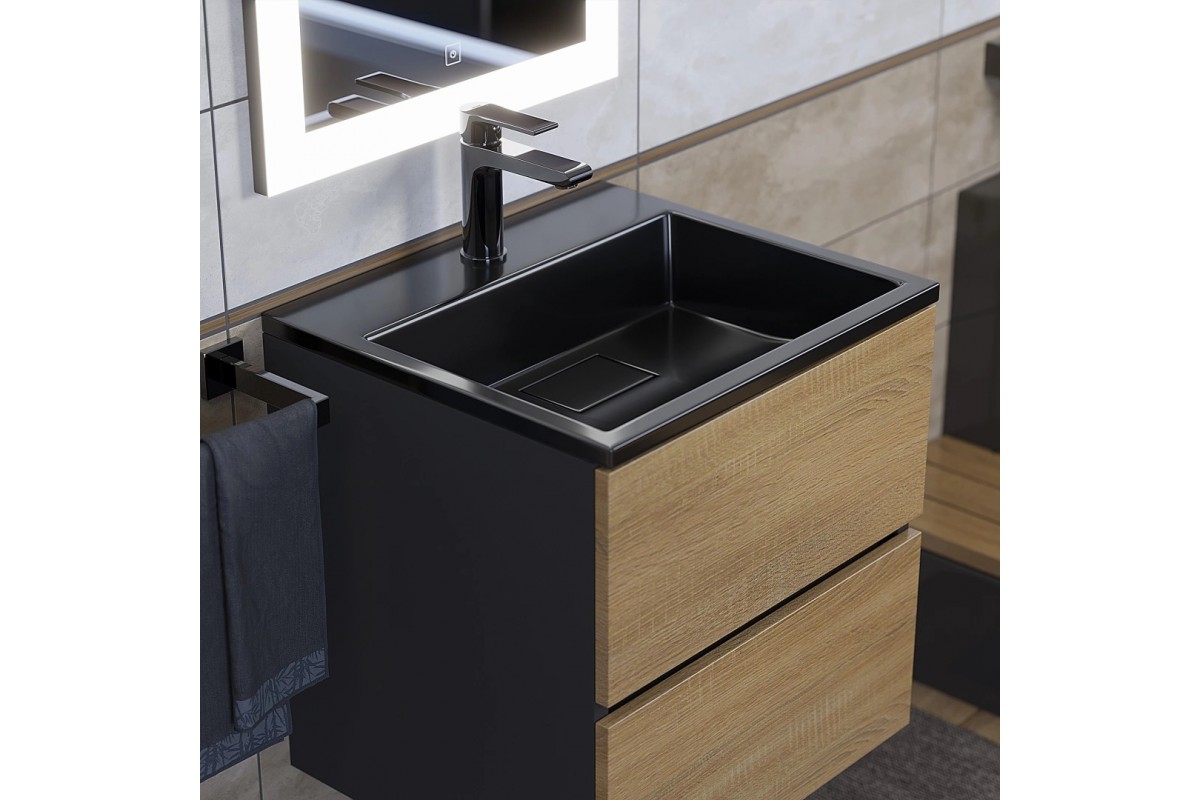 Тумба с раковиной Uperwood Barsa 50 см, подвесная, черная/дуб сонома, раковина черная 298301040