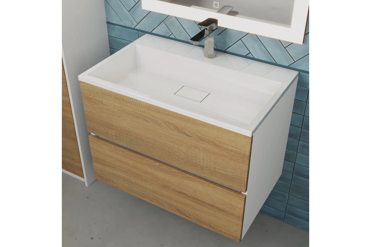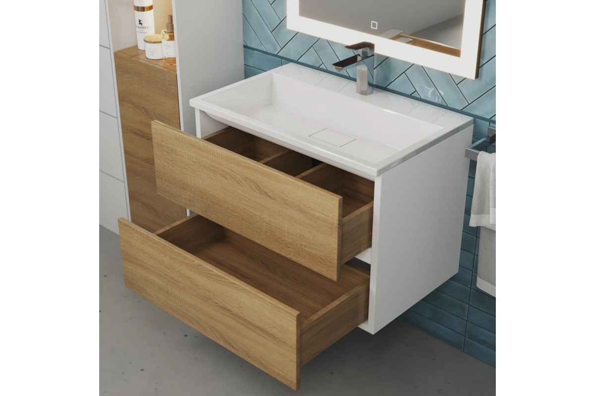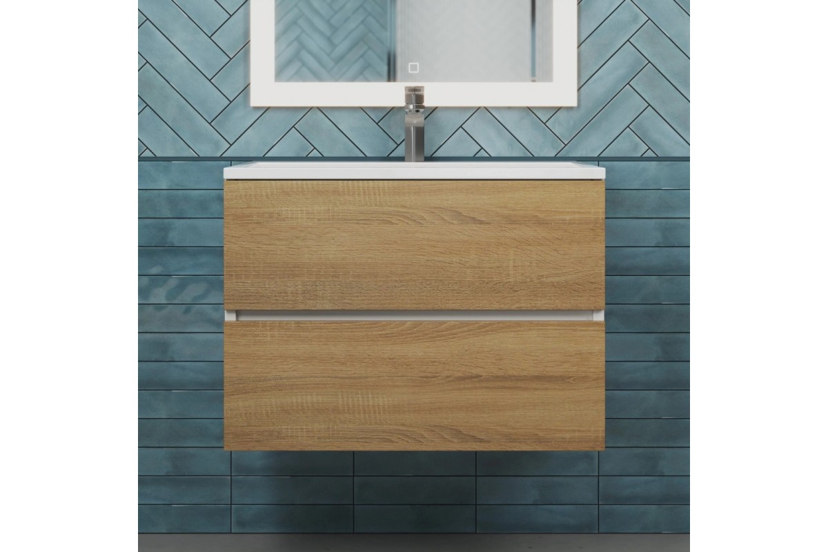 Тумба с раковиной Uperwood Barsa 80 см, подвесная, белая/дуб сонома 293020534
