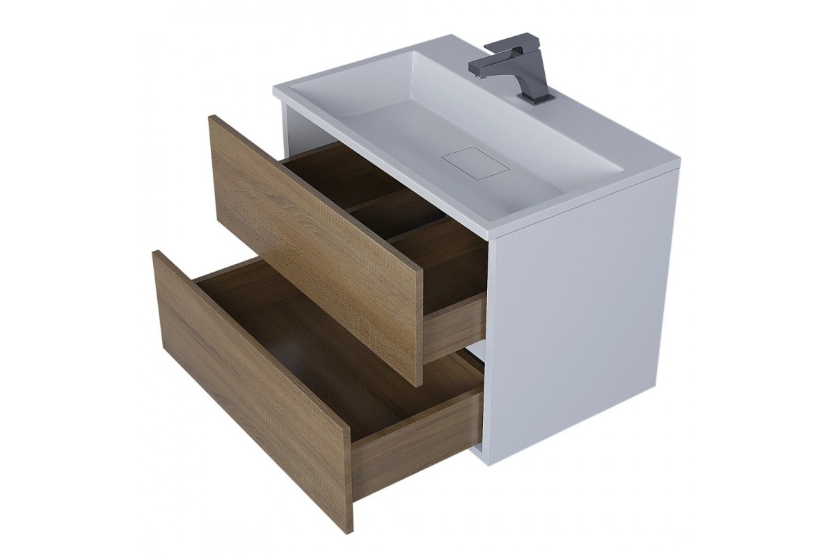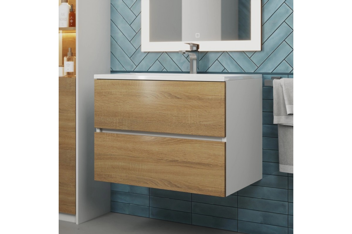 Тумба с раковиной Uperwood Barsa 70 см, подвесная, белая/дуб сонома 293020546