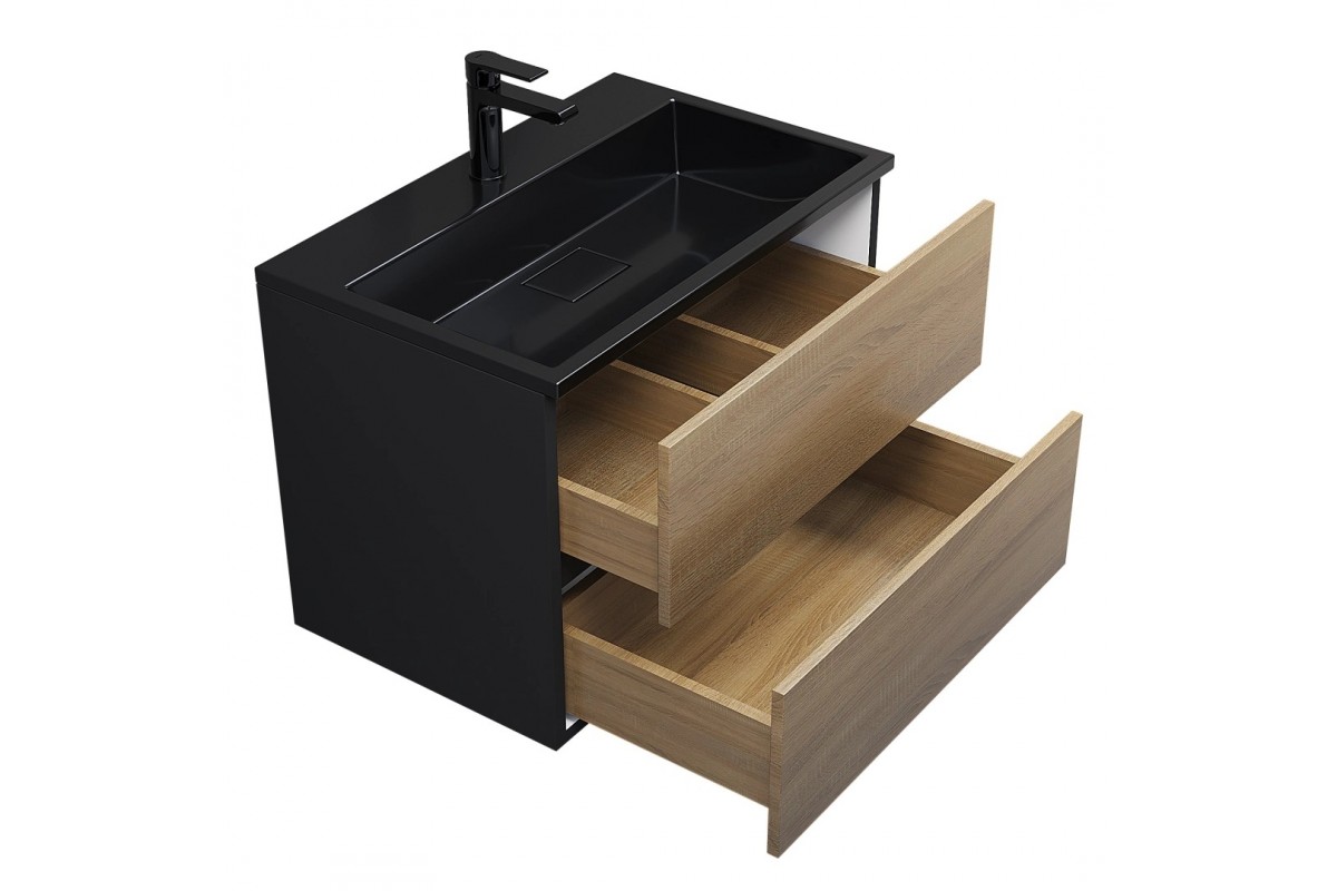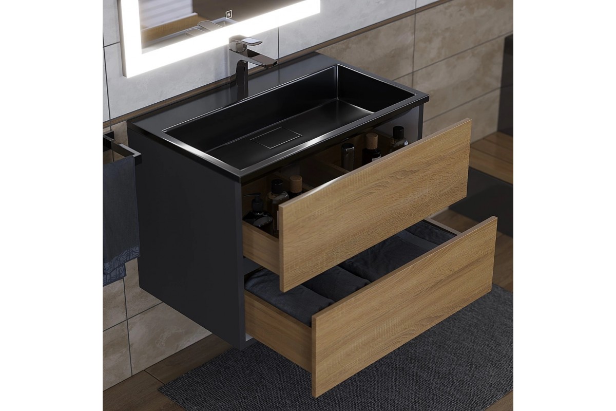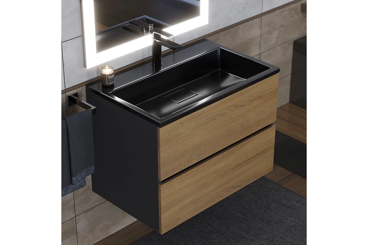 Тумба с раковиной Uperwood Barsa 70 см, подвесная, черная/дуб сонома, раковина черная 298301042