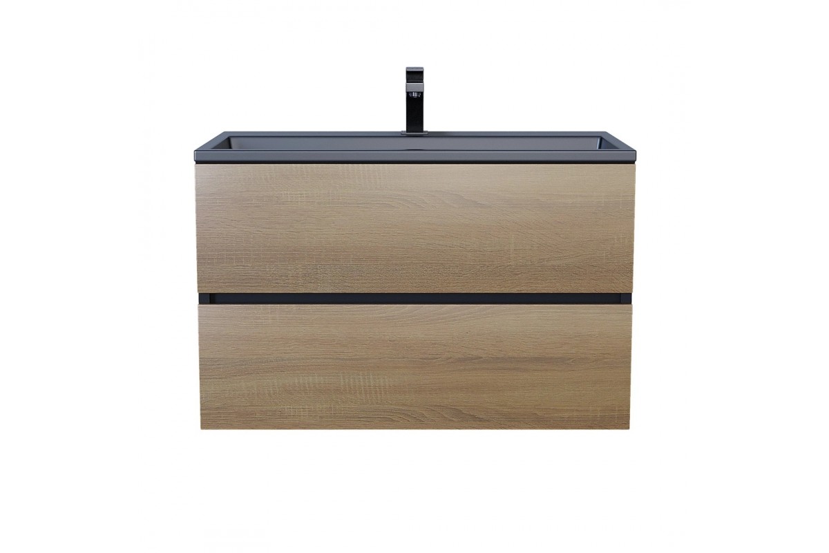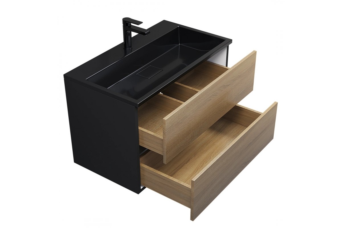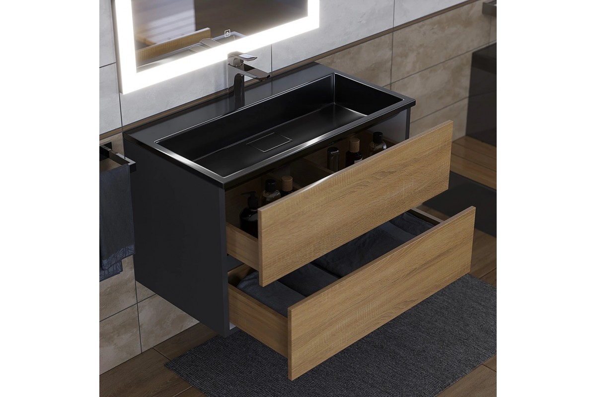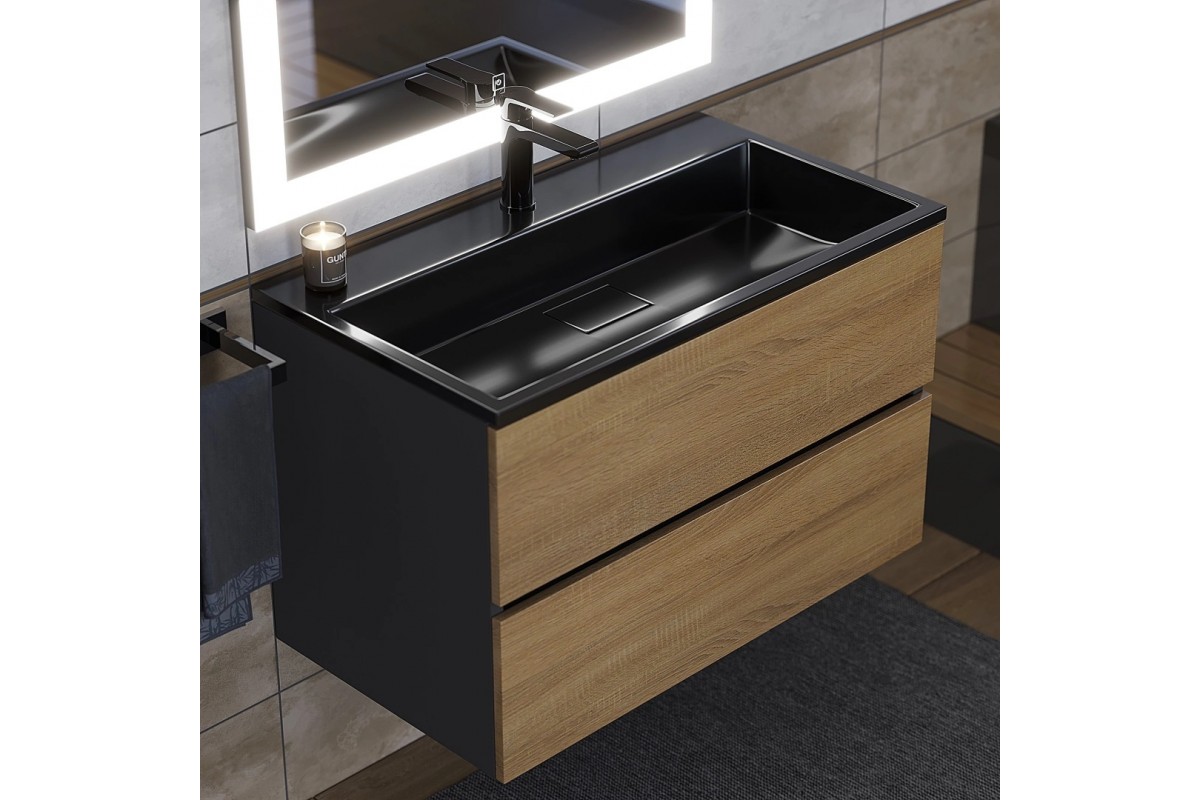 Тумба с раковиной Uperwood Barsa 80 см, подвесная, черная/дуб сонома, раковина черная 298301043