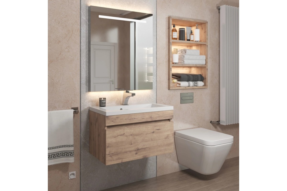 Тумба с раковиной Uperwood Eva 75 см, подвесная, Дуб Харбор Белый 3930313470