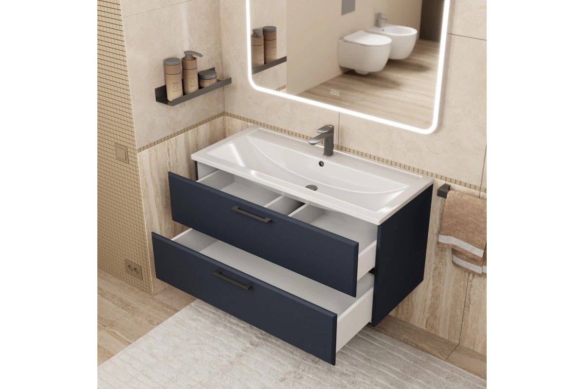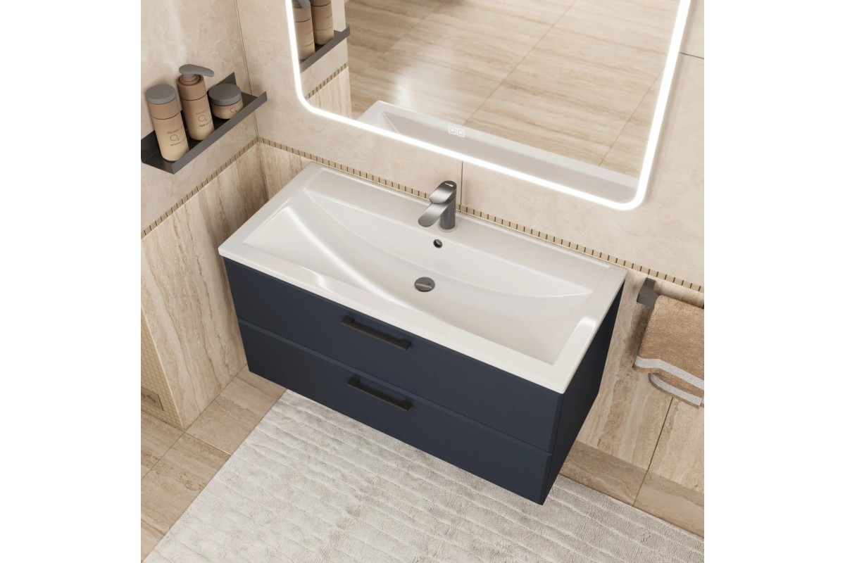 Тумба с раковиной Uperwood Foster New 100 см, подвесная, черная матовая KFosterNEW100b