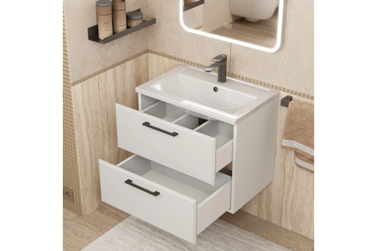 Тумба с раковиной Uperwood Foster New 60 см, подвесная, белая матовая KFosterNEW60w