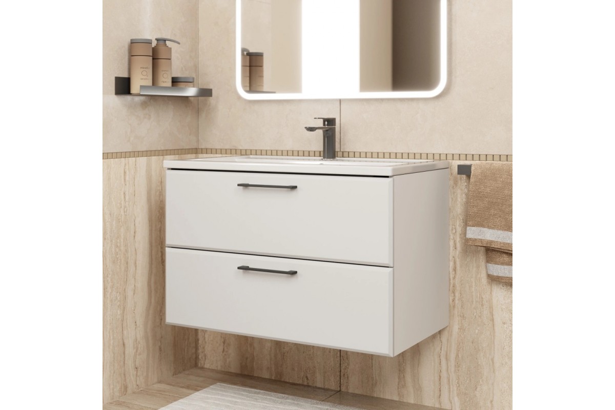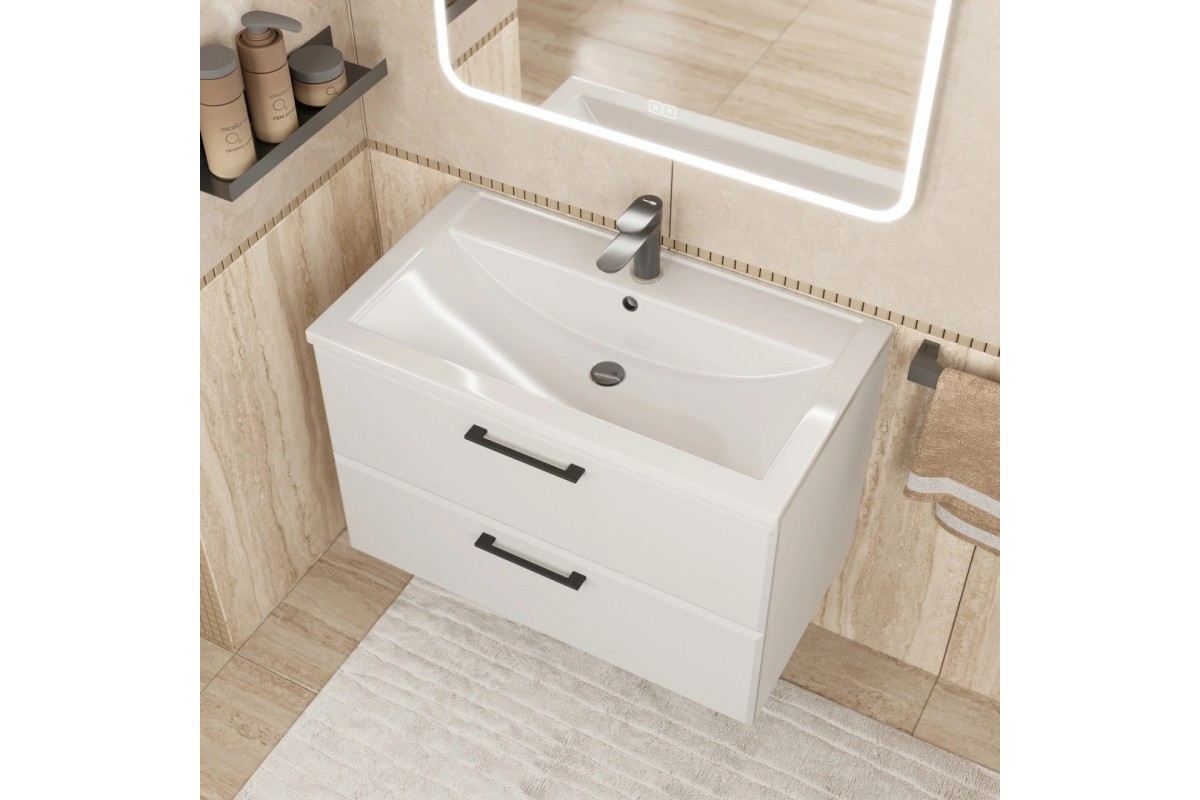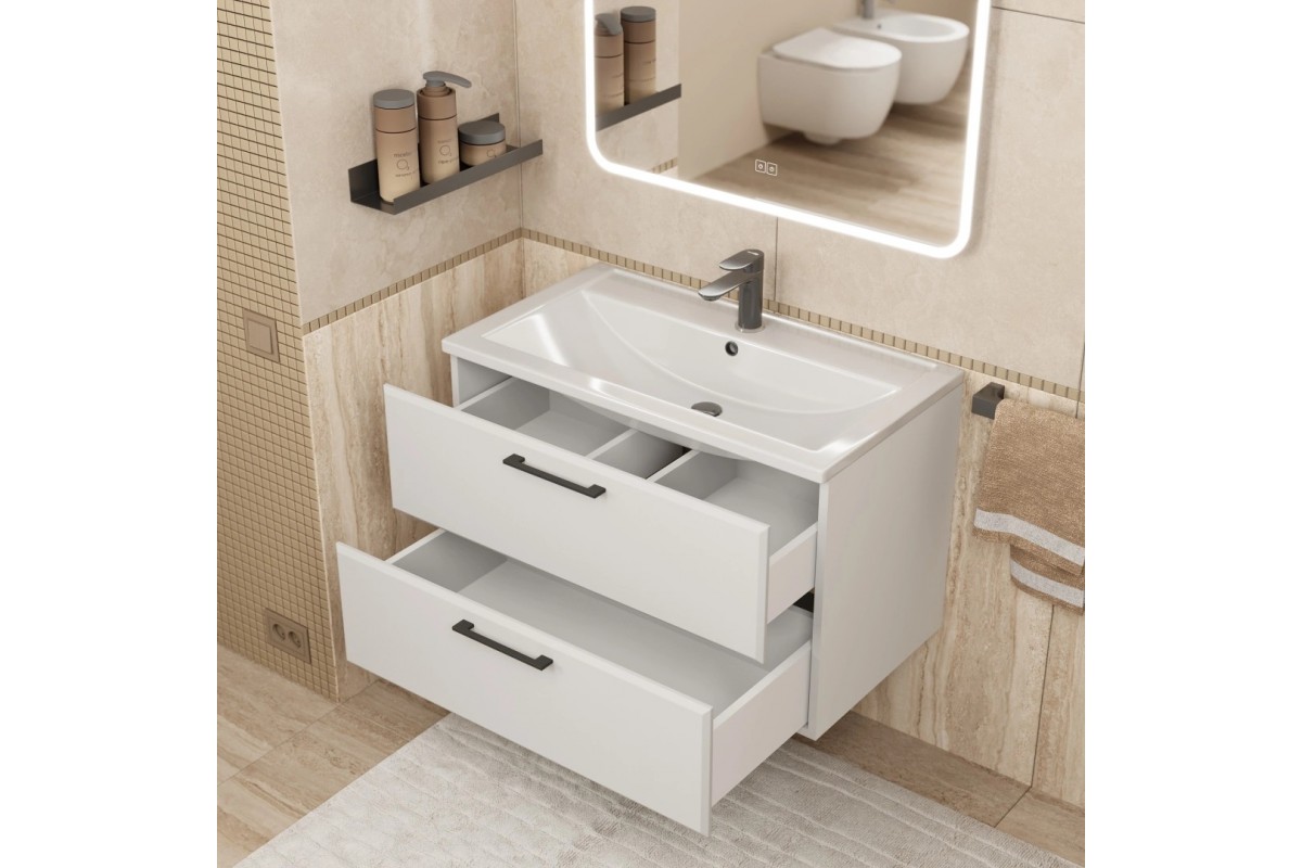 Тумба с раковиной Uperwood Foster New 80 см, подвесная, белая матовая KFosterNEW80w