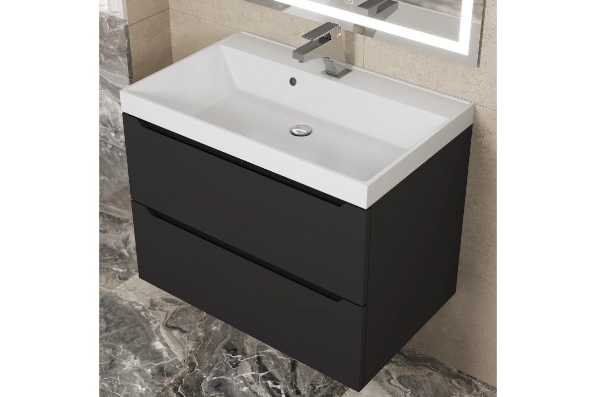 Тумба с раковиной Uperwood Tanos 70 см, подвесная, черная матовая 291020253