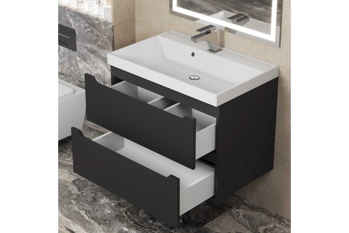 Тумба с раковиной Uperwood Tanos 70 см, подвесная, белая матовая/графит 29111020230