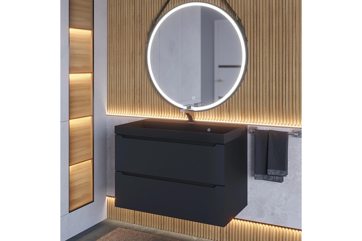 Тумба с раковиной Uperwood Tanos-Classic Quartz 80 см, подвесная, черная/уголь 3930421700