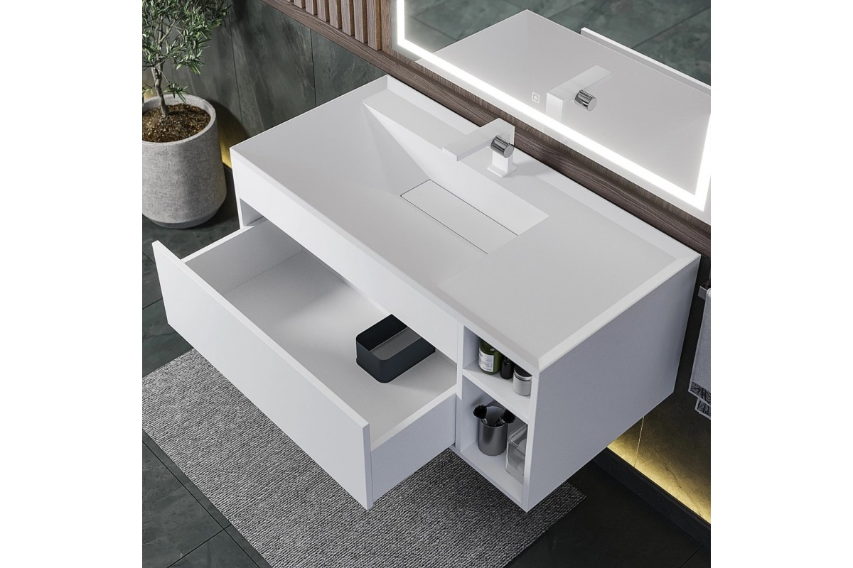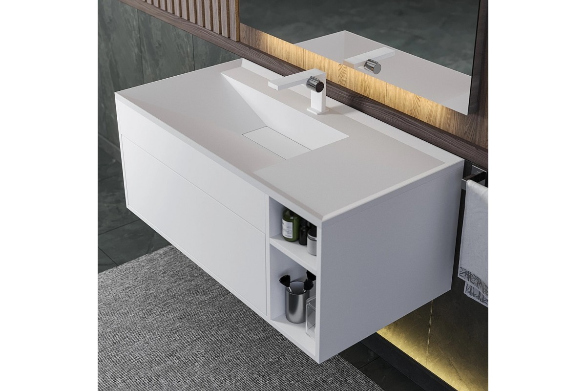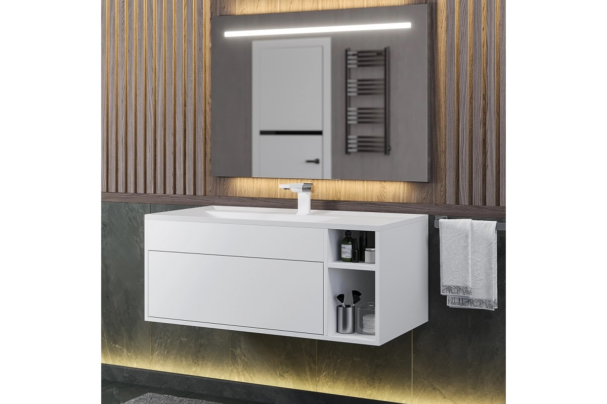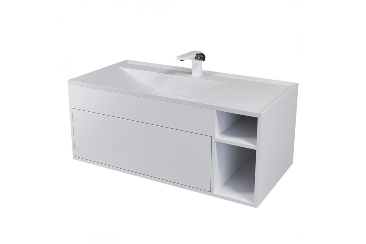 Тумба с раковиной Uperwood Lotus Premium 100 см, подвесная, белая/матовая 39340207463