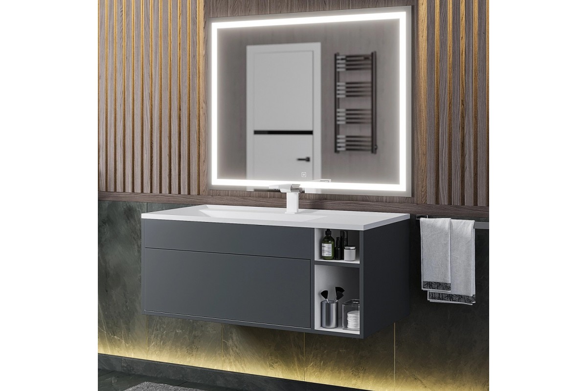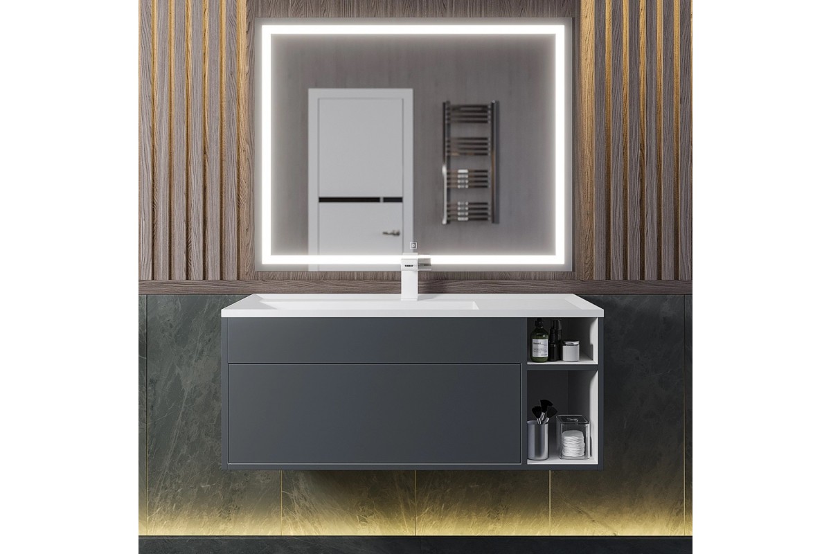 Тумба с раковиной Uperwood Lotus Premium 100 см, подвесная, серая/матовая 39340207465