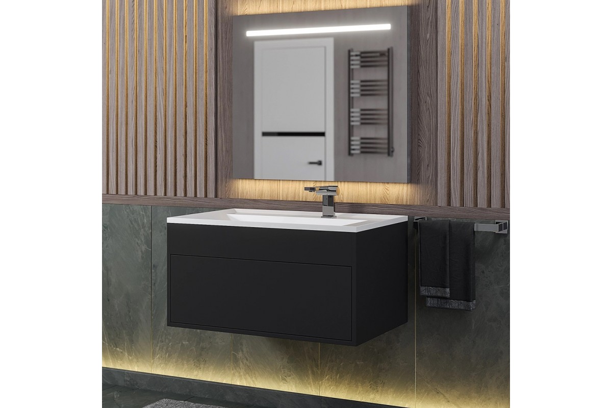 Тумба с раковиной Uperwood Lotus Premium 80 см, подвесная, черная/матовая 39340207461
