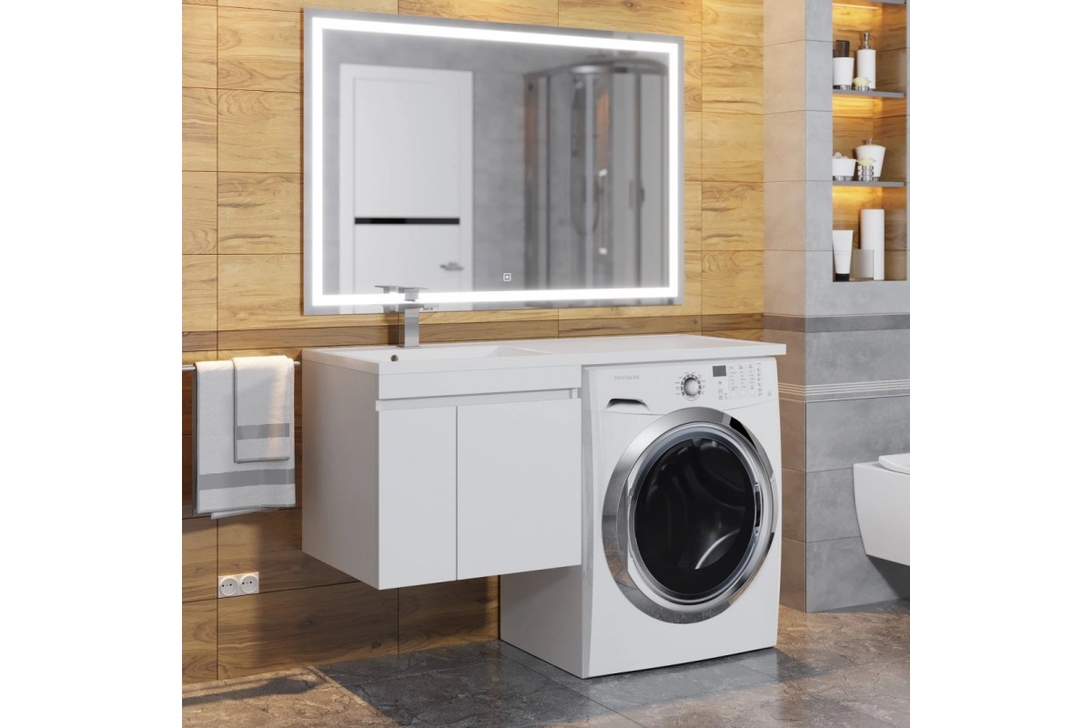 Тумба с раковиной Uperwood Magenta 60/120 см, подвесная, белая/матовая, с дверцами, левая 51930205150